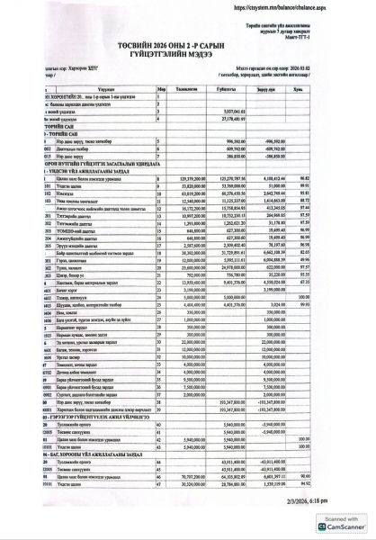 Төсвийн төлөвлөгөө, гүйцэтгэлийн харьцуулалт